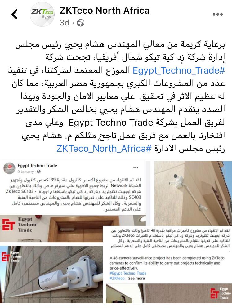 العديد من الخدمات منها التركيب والتدريب علي انظمة الحضور والانصراف ZKteco البرند الاقوي والاول في مصر باعلي نسبه خصم للموزعين لدينا فريق فني من المهندسين المتخصصين علي اعلي مستوي مهني في مجال الانظمة الامنيه 🤝لتقديم لسيادتكم الحلول الامنيه المتكامله .شكرا لاختيارك Egypt Techno Trade